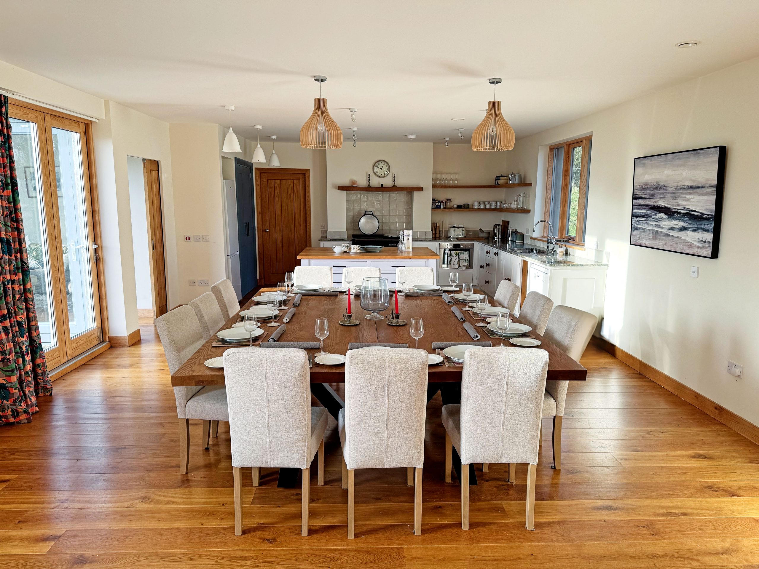 On the ground floor, there are two sitting rooms with large bespoke wood burning fireplace. A spacious open plan kitchen/dinning room form the principle entertainment area. Further facilities include a wet room, a laundry room with washer/dryer and walk-in larder. The house has Starlink wifi, a good stock of books and games.
