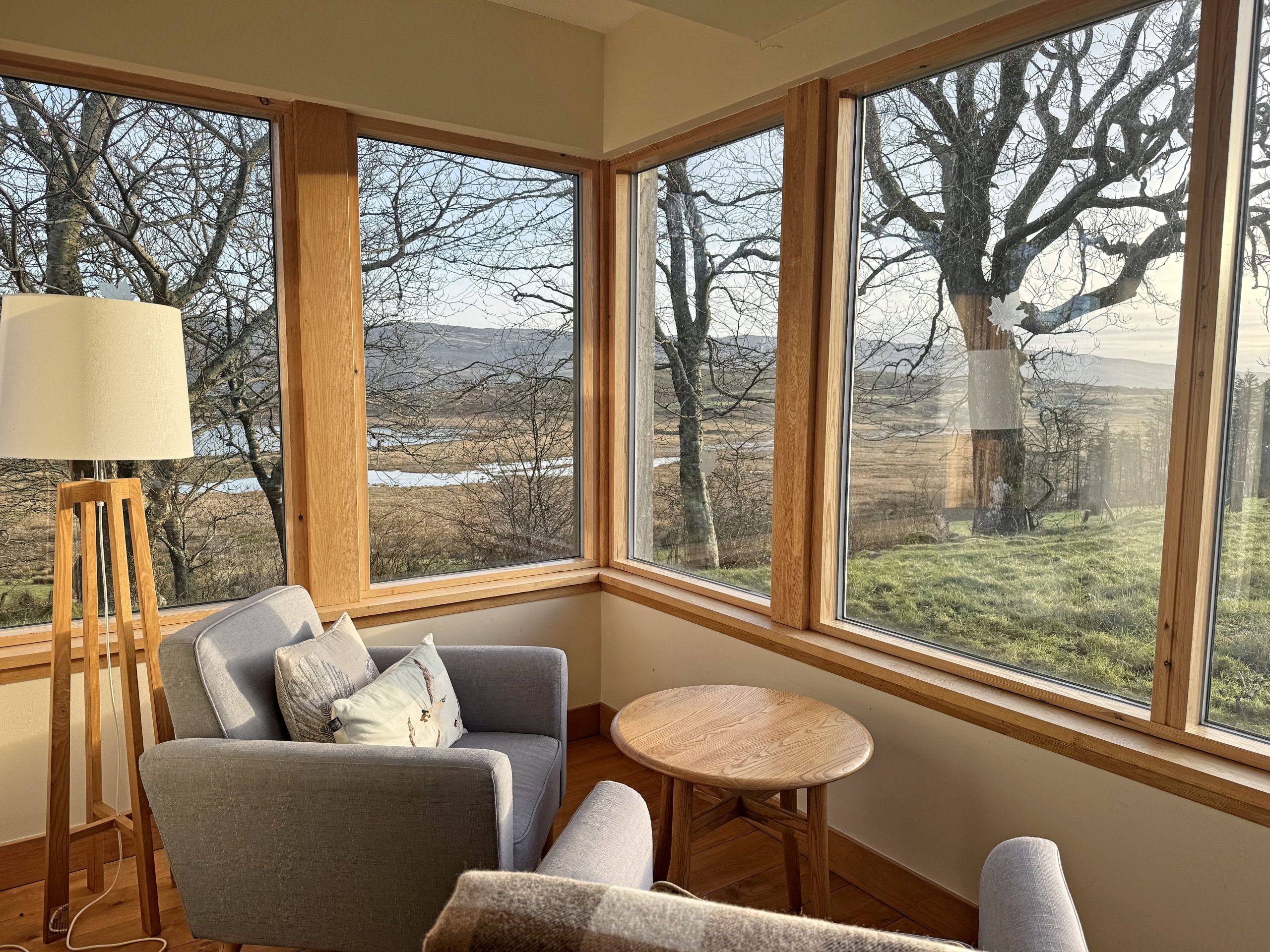 Secluded and private, all rooms have mountain or loch or sea views. All bedrooms are on the top floor: one king ensuite, one king or twin with ensuite shower room, one double with share bathroom and one sitting room with a double sofa bed.